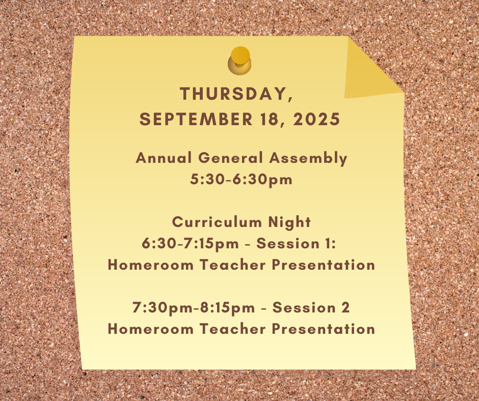 Curriculum Night will begin at 6:30 pm sharp. Please report to your child’s homeroom toreceive information on the curriculum, evaluations, homework, etc. from your child’s teacher. Time:6:30 pm – 7:15 pm – Session 1: Homeroom Teachers’ Presentation7:30 pm – 8:15 pm – Session 2: Homeroom Teachers’ Presentation 6:30 pm – 8:15 pm – The English […]